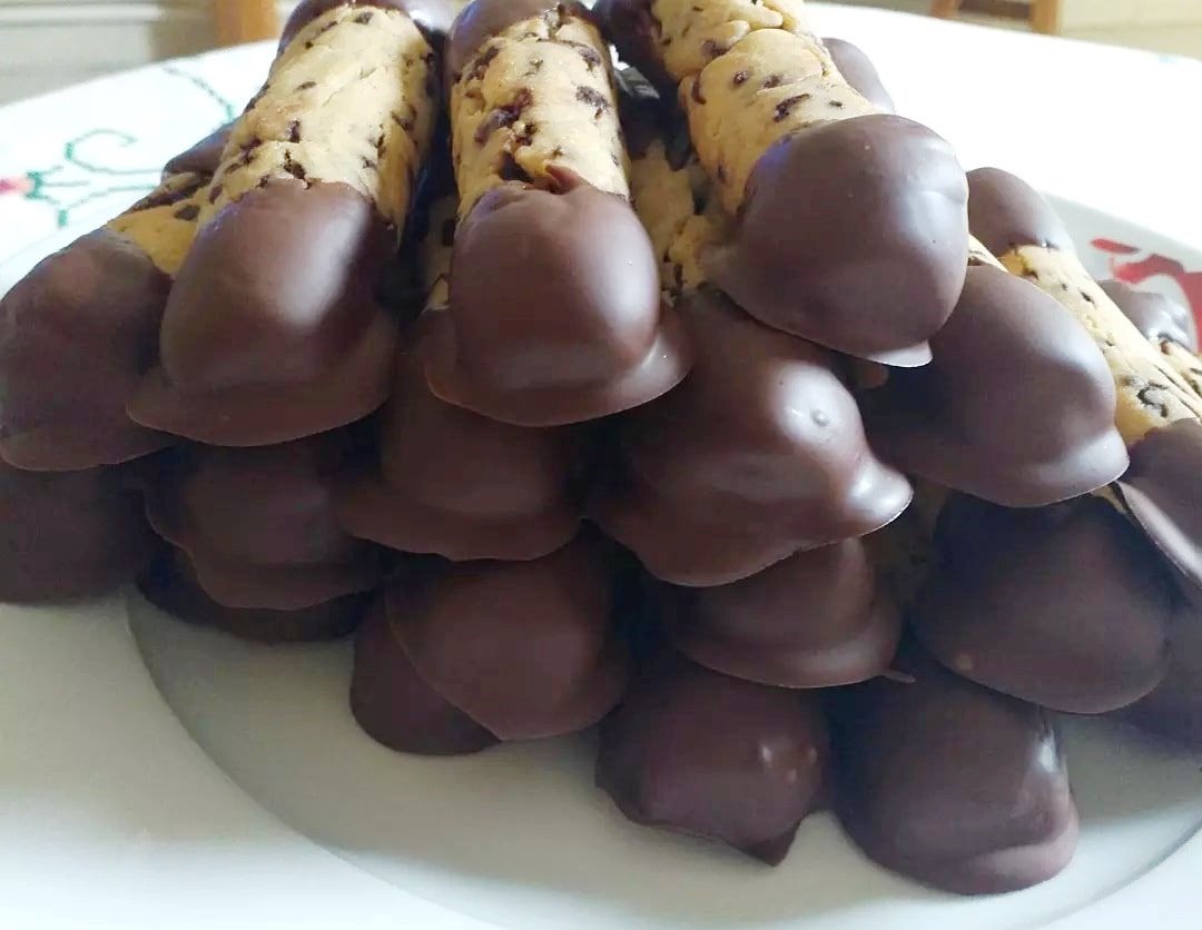 Αφού κρυώσουν τα μπισκότα λιώνουμε σε μπεν Μαρί σοκολάτα κουβερτούρα η γάλακτος ότι προτιμάτε και βουτάμε της ακρες απο τα μπισκότα μας