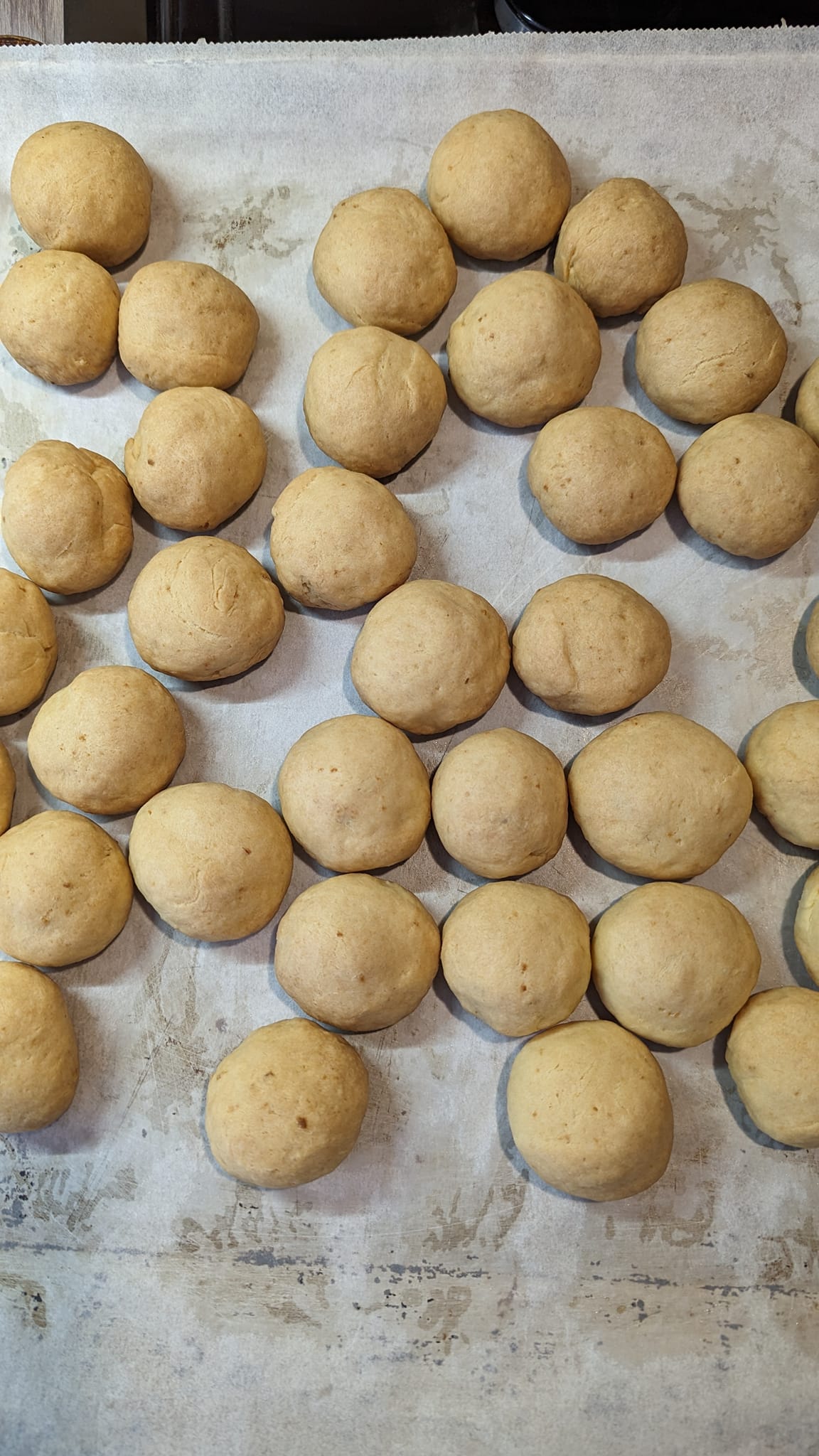 Χωρίστε τη ζύμη σε 40 ίσα κομμάτια.