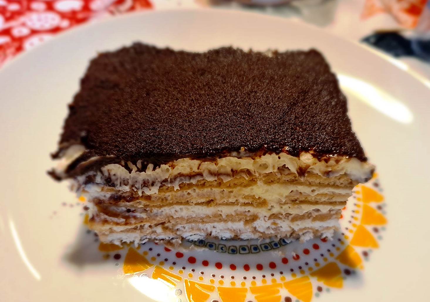 Το κέικ biscotomisu είναι έτοιμο για σερβίρισμα… Απολαύστε το γεύμα σας!