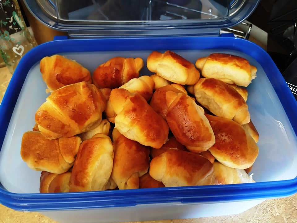 Κόβουμε σε τρίγωνα και γεμίζουμε με μαρμελάδα ή σκέτα και κλείνουμε τα βάζουμε στο ταψί και τα αφήνουμε 30 λεπτά τέλος αλείφουμε με γάλα νηστίσιμο και ψήνουμε στους 200 βαθμούς αέρα για 20 λεπτά