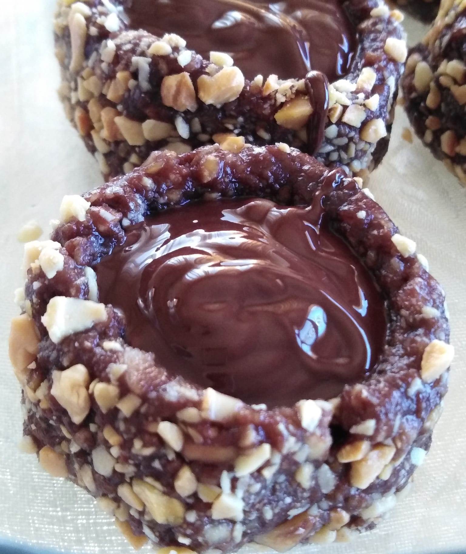 Προαιρετικά, κάνουμε μια μικρή λακούβιτσα στο κέντρο κάθε μπαλάκι και ρίχνουμε λίγη λιωμένη κουβερτούρα.