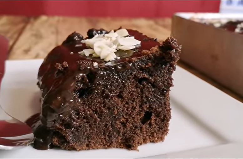 Μ ένα πιρουνι ή ξυλάκι κάνω τρύπες σ όλη την σοκολατόπιτα ώστε να απορροφήσει όλη την Σως.