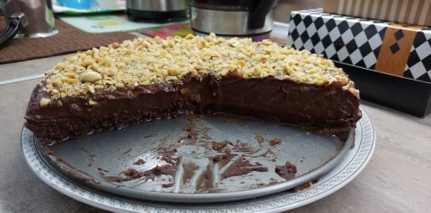 - Η βάση από τριμμένα φουντούκια και χουρμάδες αγκαλιάζει μια κρεμώδη μους σοκολάτας, δημιουργώντας μια ακαταμάχητη αρμονία γεύσεων.