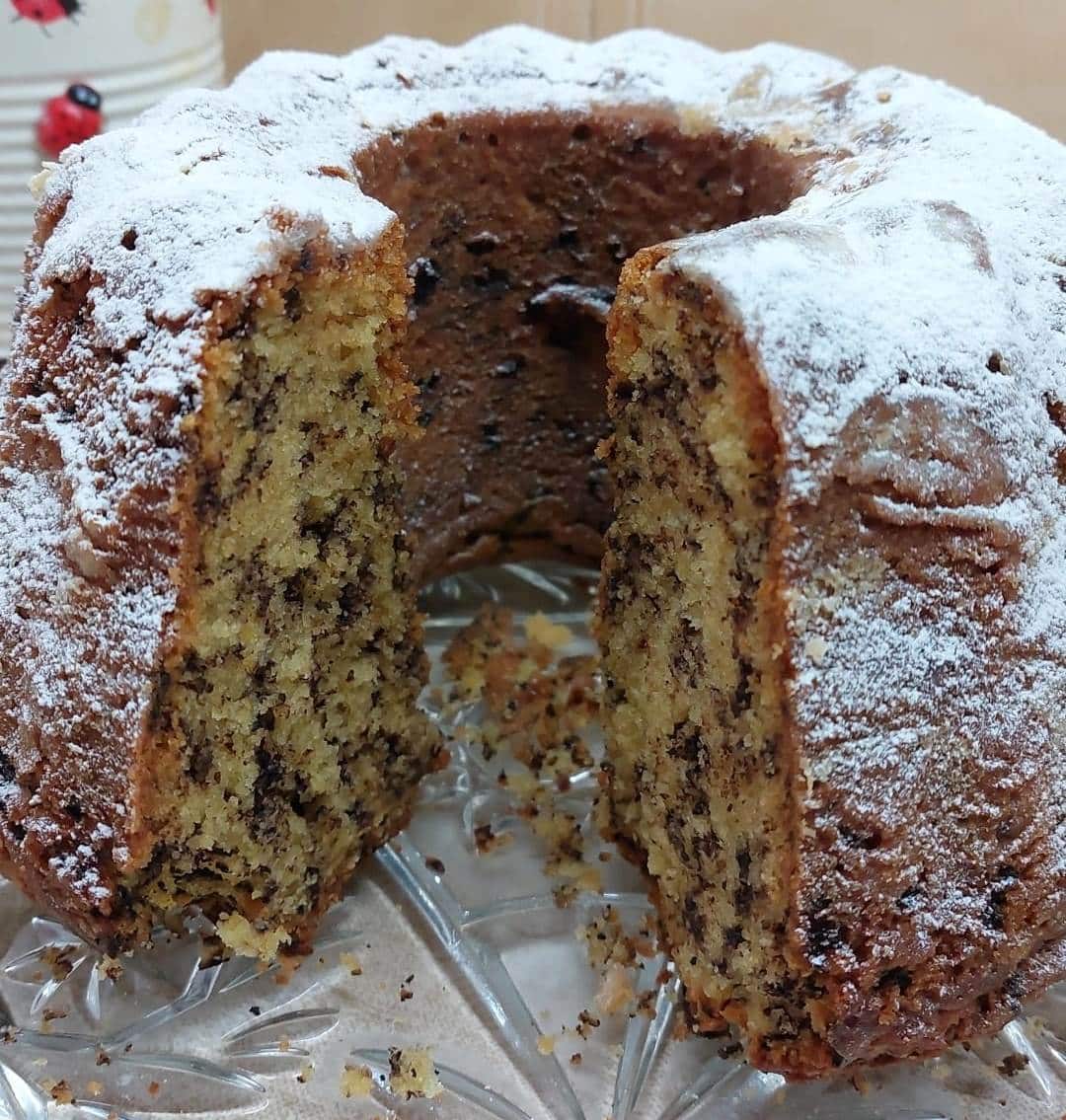 και ψήνουμε στους 170 βαθμούς για περίπου 50λεπτα με 1 ώρα ,ανάλογα τον φούρνο σας.Το αφήνουμε να κρυώσει και πασπαλίζουμε με ζάχαρη άχνη!!!