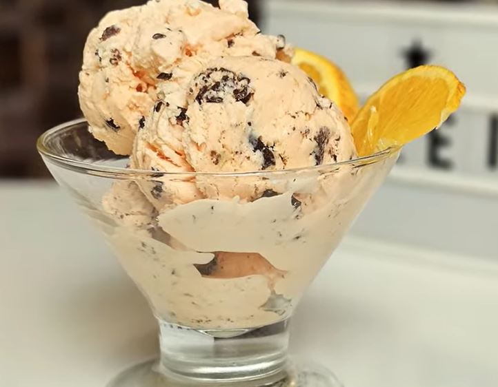 Σπιτικό Παγωτό Πορτοκάλι με Κομματάκια Σοκολάτας, μια δροσιστική εμπειρία γεμάτη με πλούσια γεύση πορτοκαλιού και τραγανές πινελιές σοκολάτας. Η κρεμώδης υφή του παγωτού αγκαλιάζει τα ζουμερά κομμάτια σοκολάτας, δημιουργώντας έναν αρμονικό συνδυασμό που θα σας μαγέψει.