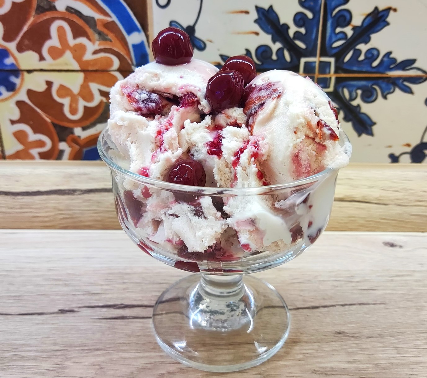 Είχαμε ένα βάζο γεμάτο γλυκό κερασι, δεν είχα άλλη επιλογή από το να φτιάξω παγωτό βανίλια και να τα βάλω μέσα!