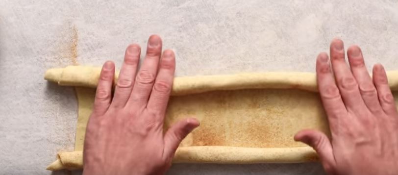 Διπλώστε τις πλευρές της ζύμης προς το κέντρο, έτσι ώστε να συναντηθούν στη μέση. Διπλώστε ξανά τις πλευρές έτσι ώστε οι δύο πτυχές να συναντηθούν στο κέντρο