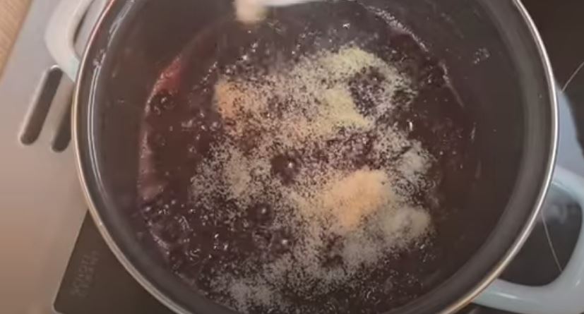 Την επόμενη μέρα, βάζουμε την κατσαρόλα σε υψηλή φωτιά και βράζουμε και προσθέτουμε και την ζελατίνη και ανακατεύουμε