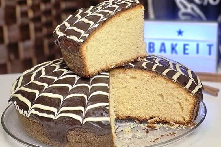 Οταν θα έχουμε ένα υπέροχο μοσχομυριστό μείγμα το αδειάζουμε σε ένα ταψάκι με διάμετρο 30 εκατοστών το οποίο το έχουμε βουτυρώσει και αλευρώσει. Ψήνουμε σε προθερμασμένο φούρνος 175 βαθμούς για περίπου μία ώρα τσεκάρουμε και με μαχαιράκι να βγαίνει καθαρό