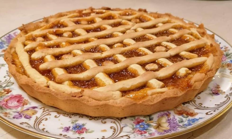 πάτο, φτιάχνουμε με τη ζύμη ένα φυτίλι από πάνω, σε μορφή πλέγματος, ψήνουμε στο 180% για 35-40 λεπτά μέχρι να ροδίσει❤️
