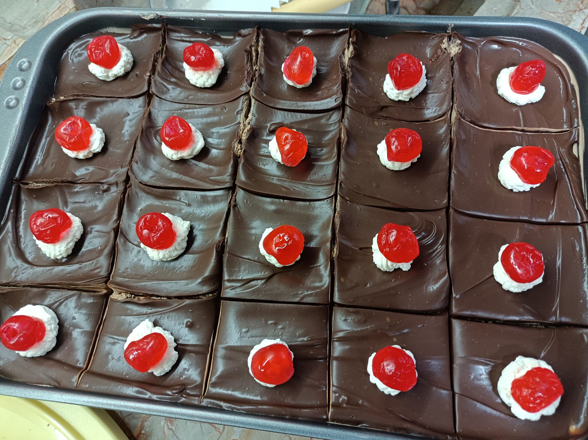 Διακοσμούμε με ό,τι επιθυμούμε, π.χ. σαντιγί και κερασάκια.