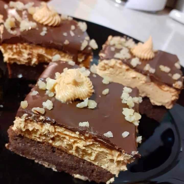 Χτυπάω στο μίξερ τα δύο Ερμόλ για 5-6 λεπτά μέχρι να αφρατέψουν.Προσθέτω το καραμελωμένο ζαχαρούχο και χτυπάω καλά μέχρι να ομογενοποιηθούν τα υλικά και να έχω μια παχύρρευστη κρέμα.Την στρώνω στο ταψάκι μου και τη βάζω στο ψυγείο για 2-3 ώρες να παγώσει.Για την γκανάζ σοκολάτας βάζω όλα τα υλικά σε μπεν μαρί και ανακατέυω μεχρι να λιώσει η κουβερτούρα.Αφηνω να κρυώσει και την στρώνω επανω στο γλυκό.Εκανα ροζετες με την κρέμα καραμελας και έβαλα τριμμένο αμύγδαλο!