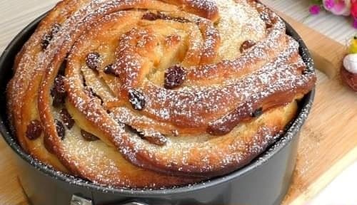 Βάλτε τις κομένες λωρίδες σε σχήμα σπείρας σε ένα βουτυρωμένο και αλευρωμένο ταψί.