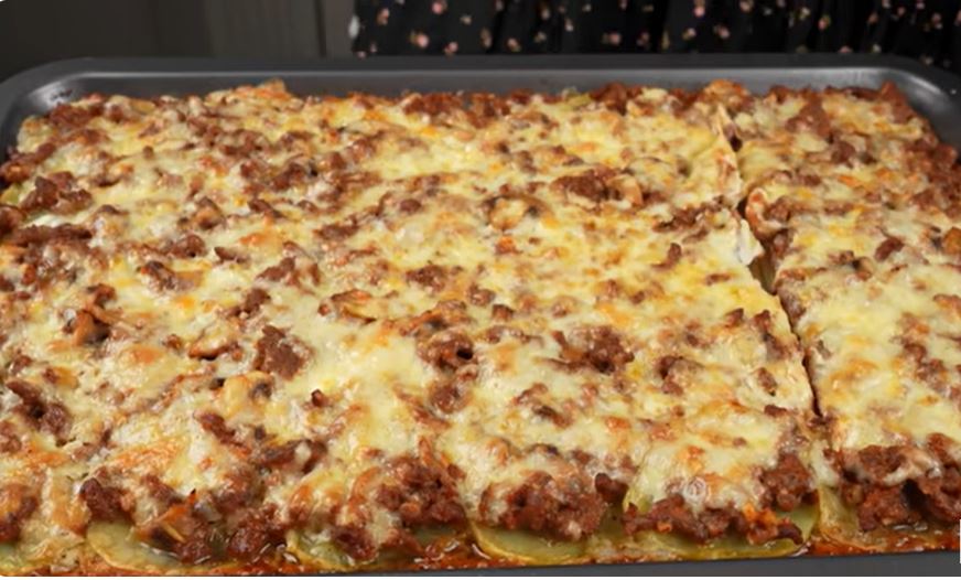 Βγάζω το ταψί από τον φούρνο και απλώνω τη γέμιση του κιμά πάνω από τις πατάτες, καλύπτοντάς τες. Πασπαλίζω με το υπόλοιπο τυρί μοτσαρέλα και ψήνω για περίπου 15 λεπτά ακόμη. Μόλις το φαγητό είναι έτοιμο, το βγάζω από τον φούρνο, το αφήνω λίγο να κρυώσει, το κόβω και σερβίρω.