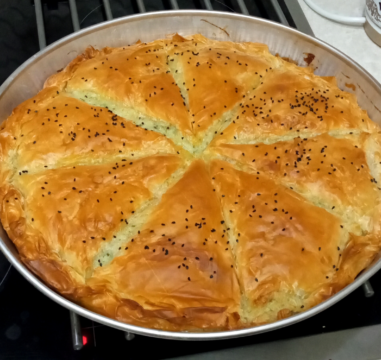 Ανακατεύουμε καλά και σε ένα ταψακι αλείφουμε με ελαιόλαδο βάζουμε 1 φύλλο και ραντίζουμε με λίγο λάδι συνεχίζουμε με αλλά 5 φύλλα αφού τα ραντίζουμε κάθε φορά με λάδι και ρίχνουμε την γέμιση