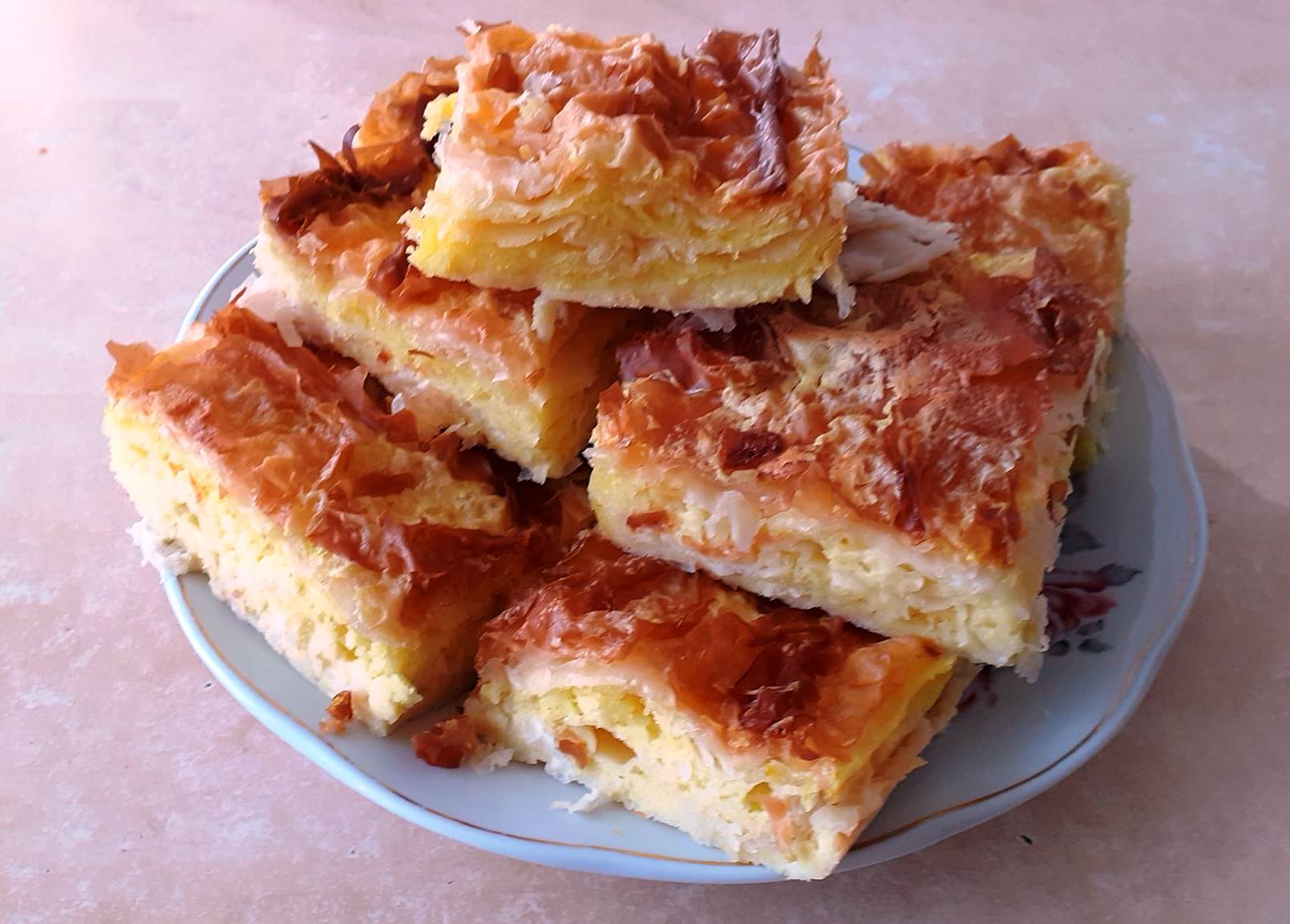 Ψήνετε την πίτα όμορφα και σιγά σιγά, θα φουσκώσουν τα φύλλα και θα ψηθεί και η γέμιση. Από πάνω δημιουργείται μια τέλεια κοκκινωπή κρούστα.