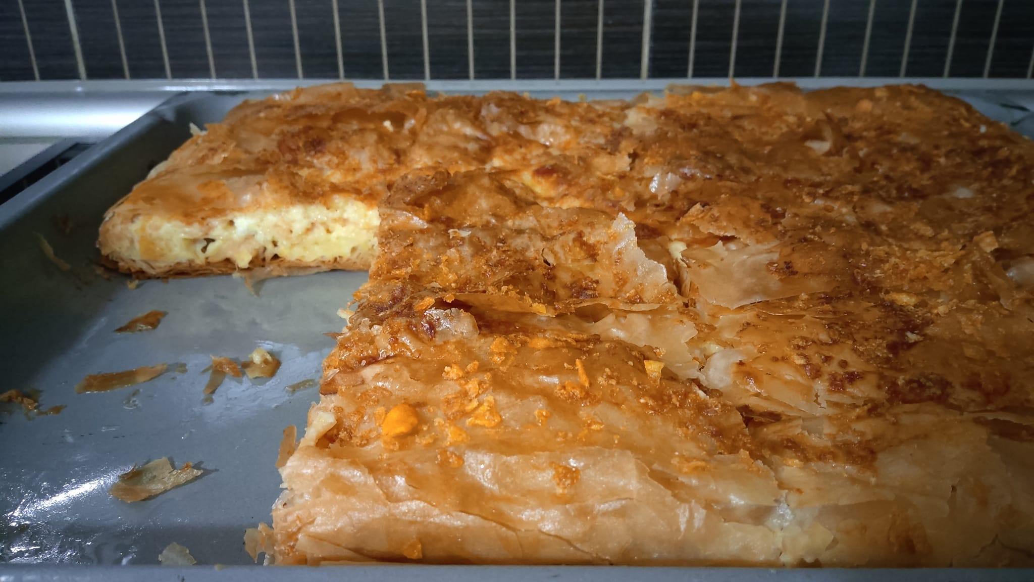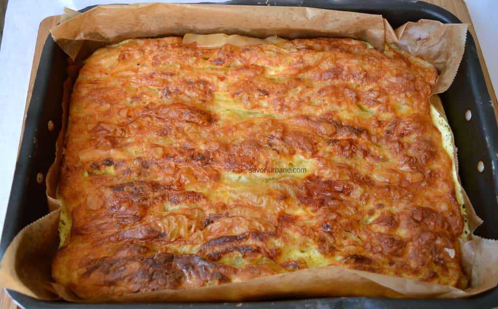 Ψήνετε την πίτα όμορφα και σιγά σιγά, θα φουσκώσουν τα φύλλα και θα ψηθεί και η γέμιση. Από πάνω δημιουργείται μια τέλεια κοκκινωπή κρούστα.
