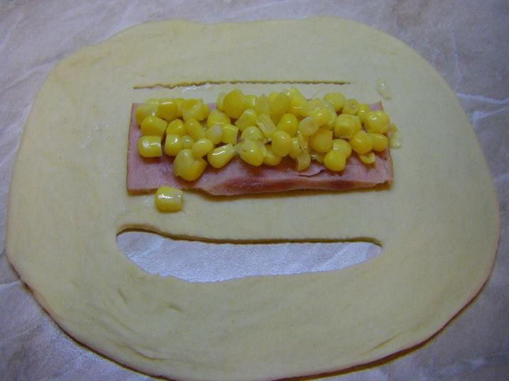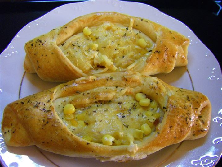 Πεινιρλί με ζαμπόν, καλαμπόκι και κίτρινο τυρί.