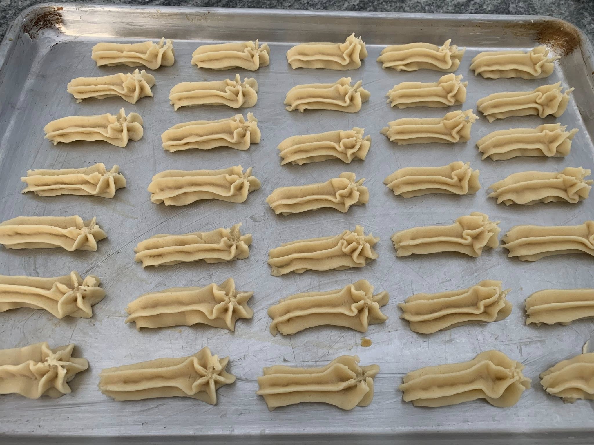 - Εναλλακτικά: Αν δεν έχω σακούλα ζαχαροπλαστικής, βάζω τη ζύμη σκεπασμένη με μεμβράνη στο ψυγείο για μισή ώρα να σφίξει και μετά κάνω τα μπισκότα με πρέσα για μπισκότα.