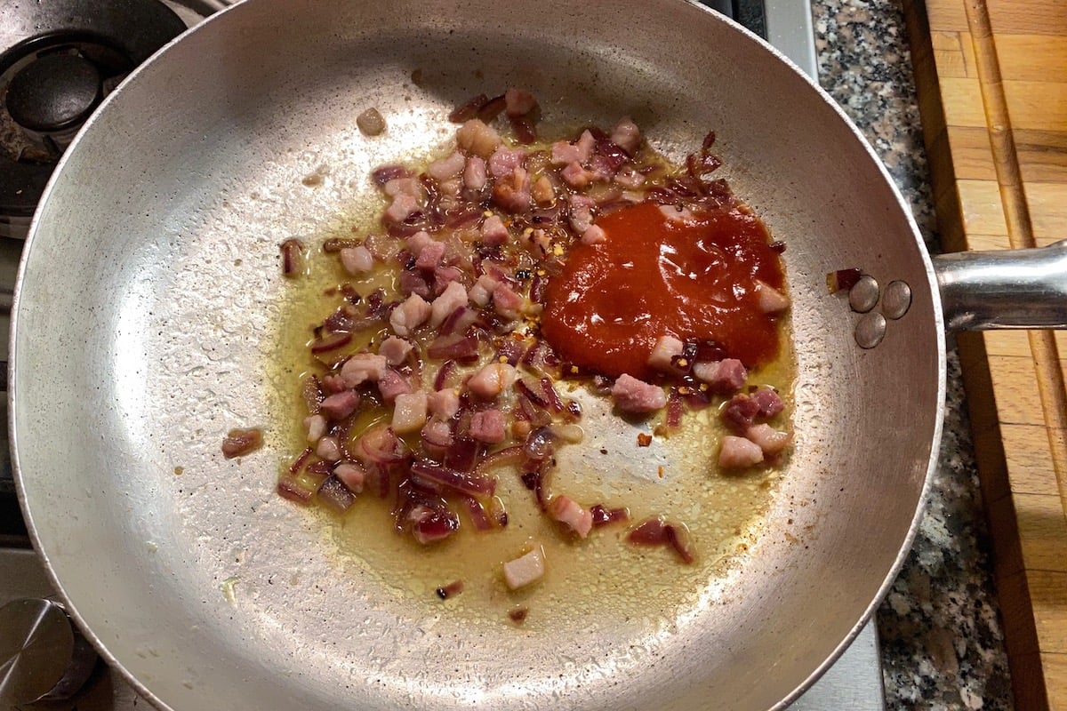 (Το βράζουμε μετά την προσθήκη σάλτσας ντομάτας στο τηγάνι.)