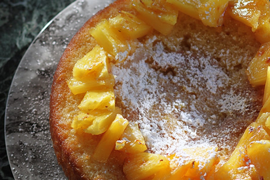 Σερβίρετε κάθε κομμάτι του ρεβάνι με ένα κομμάτι «καμένο» ανανά και ένα κουτάλι από ελληνικό γιαούρτι ή παγωτό.