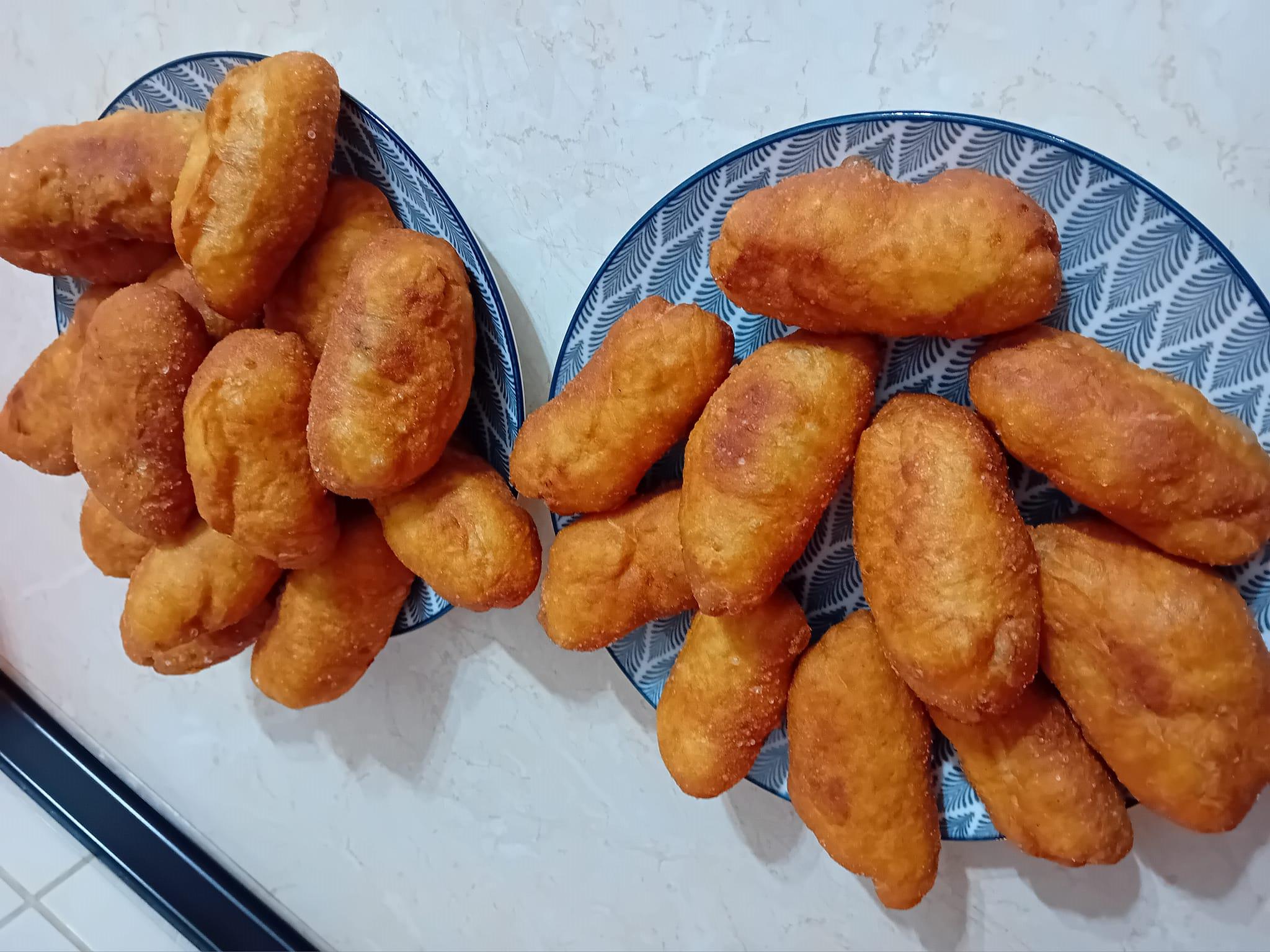 - Ζεσταίνουμε λάδι σε μια κατσαρόλα και τηγανίζουμε τα πιροσκί μέχρι να ροδίσουν.