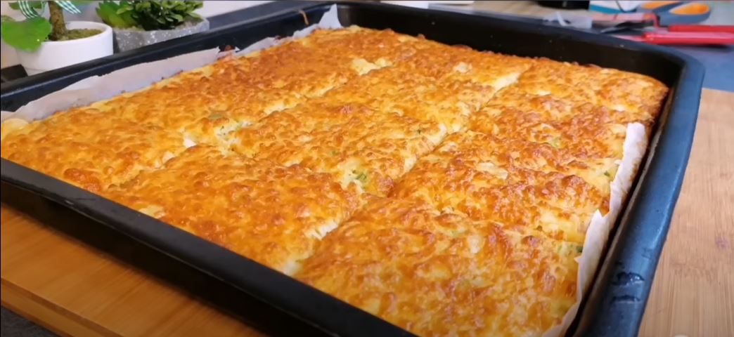 Σε ένα ταψί φούρνου που το έχουμε λαδώσει και το έχουμε στρώσει με μία λαδόκολλα αδειάζουμε όλο το μείγμα το απλώνουμε από πάνω ρίχνουμε τριμμένη μοτσαρέλα και βάζουμε στο φούρνο στους 180 βαθμούς για 35 με 40 λεπτά και η πίτα μας είναι έτοιμη