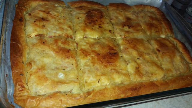 Ααα και το μυστικό.. αν δεν έχουμε φύλλο χωριάτικο κάνουμε το κρούστας να μοιάζει σαν χωριάτικο πως; ρίχνοντας αλεύρι στα φύλλο καθώς τα στρώνουμε στο ταψί…