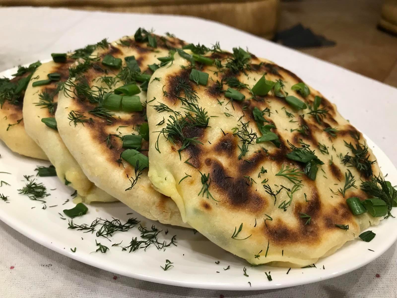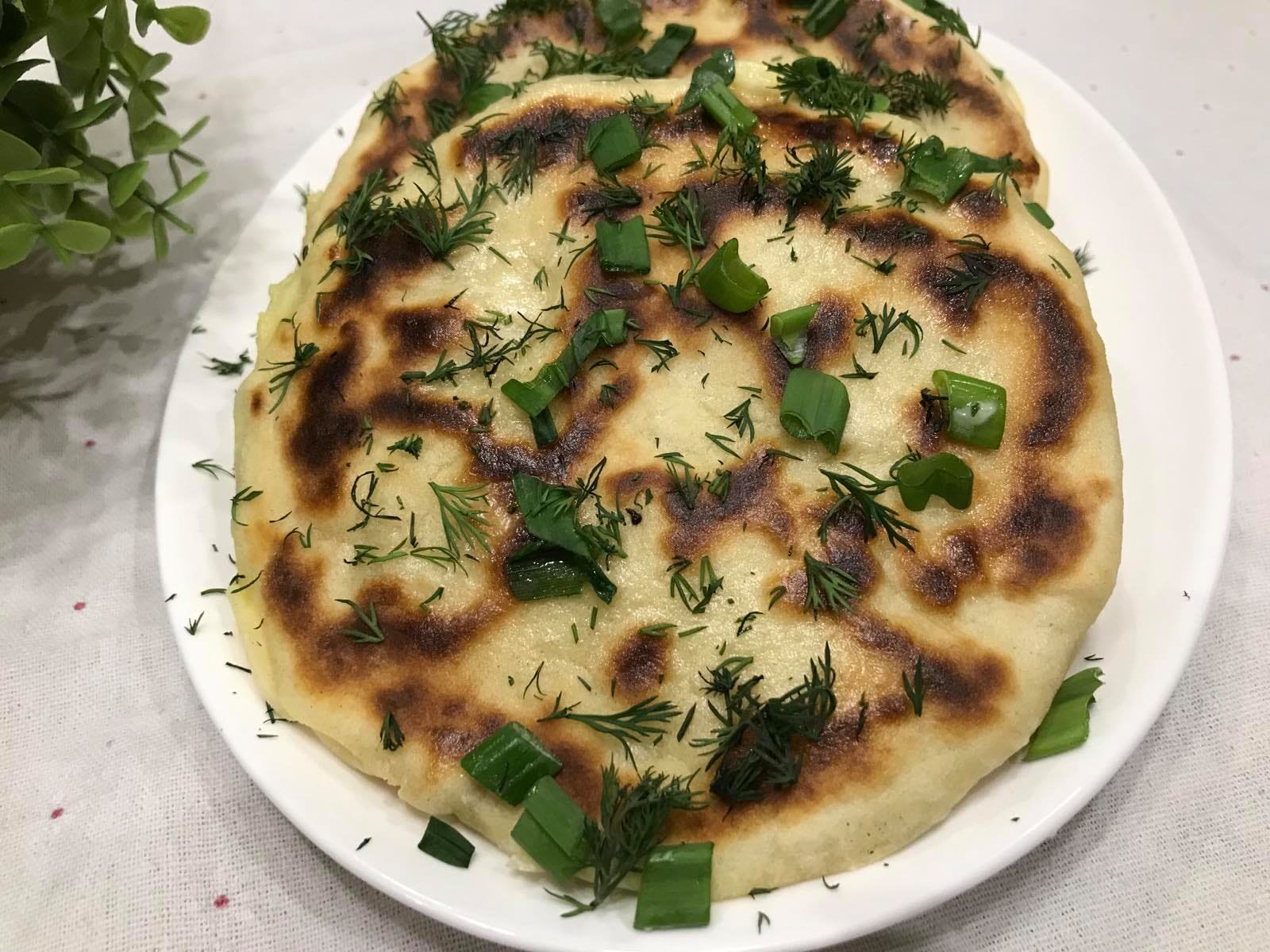 Μαζεύουμε τη ζύμη στα πλαϊνά και σχηματίζουμε μια μπάλα. Στη συνέχεια, ανοίξτε σε κύκλο. Ζεσταίνουμε ένα τηγάνι με χοντρό πάτο σε μέτρια φωτιά. Απλώστε το και τηγανίστε από κάθε πλευρά μέχρι να ψηθεί. Καθώς η μία πλευρά ροδίζει καλά, απαλά, με μια φαρδιά