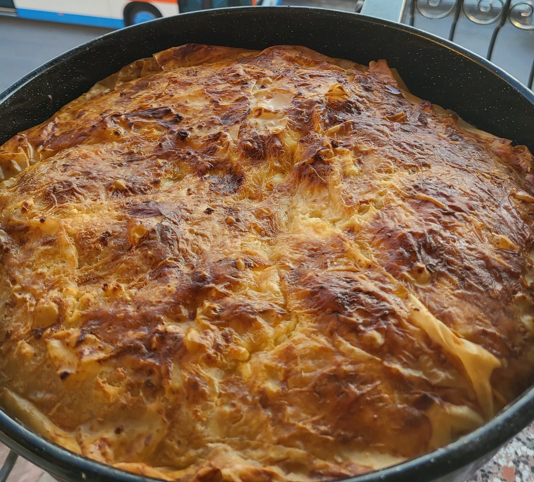 Η συνταγή της πίτας είναι της Αργυρώ Μπαρμαρίγου λέγεται βουτυχτη και η εκτέλεση της κας Athanasia Tsigara.Εγω αντί για νερό που λέει η συνταγή έβαλα γάλα έγινε πιο αφρατη..
