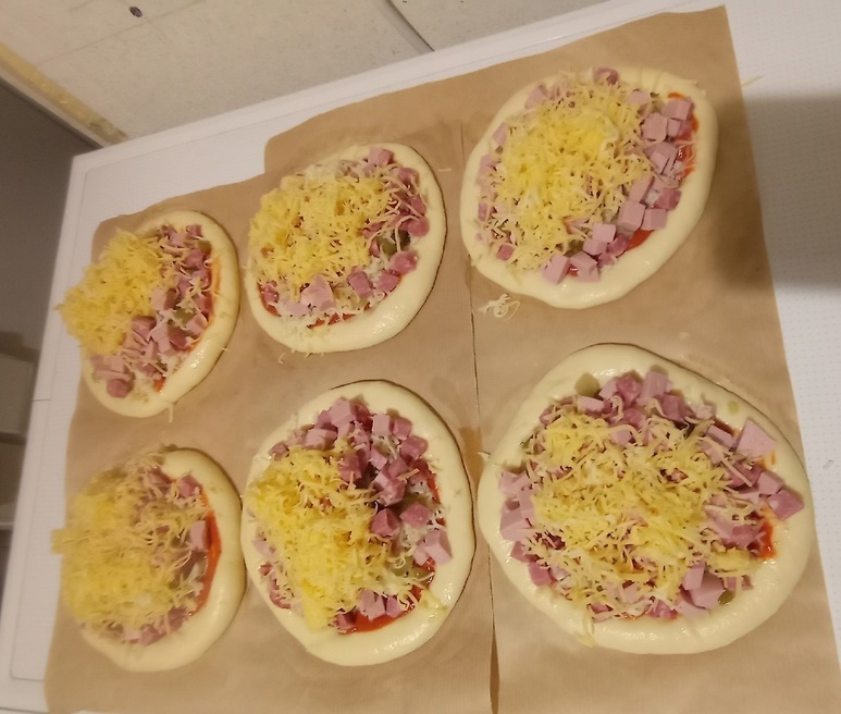 Άπλωσε σάλτσα ντομάτας σε κάθε φύλλο, πρόσθεσε τυρι πιπεριά τα αλλαντικα και απο πάνω πάλι τυρί.