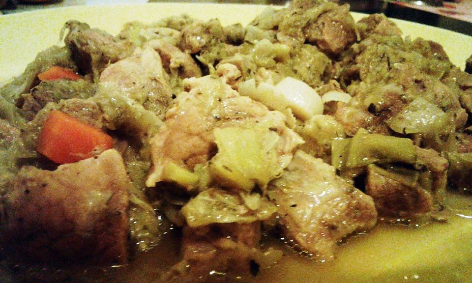 750 γρ. Χοιρινό με λίπος (κομμένο σε μπουκιές)1 κιλό Πράσα (κομμένα σε ροδέλες)