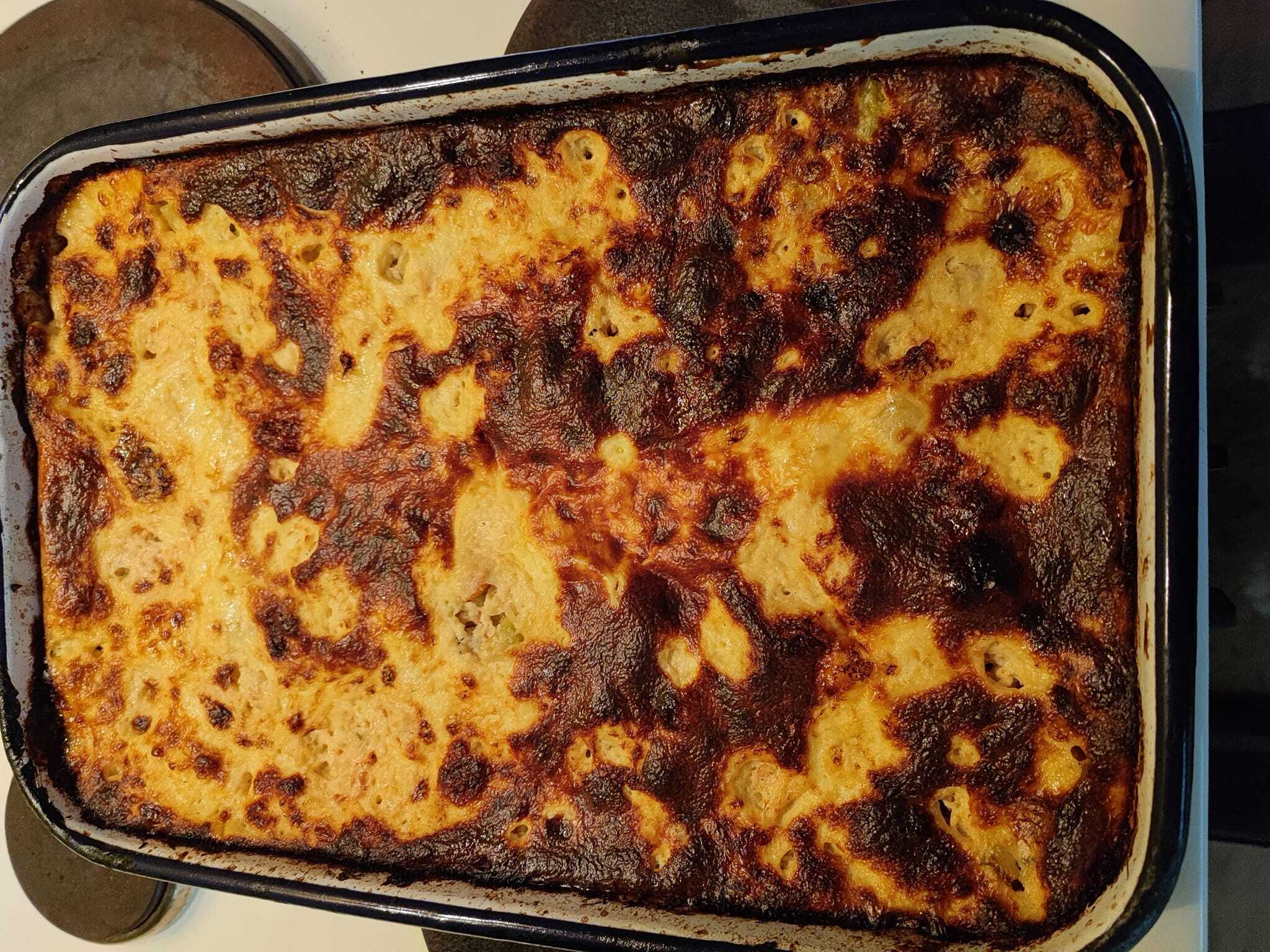 Πρέπει να προσέξουμε να μην καεί το καπάκι του μουσακά, αλλά να γίνει χρυσό, αφράτο και ορεκτικό.