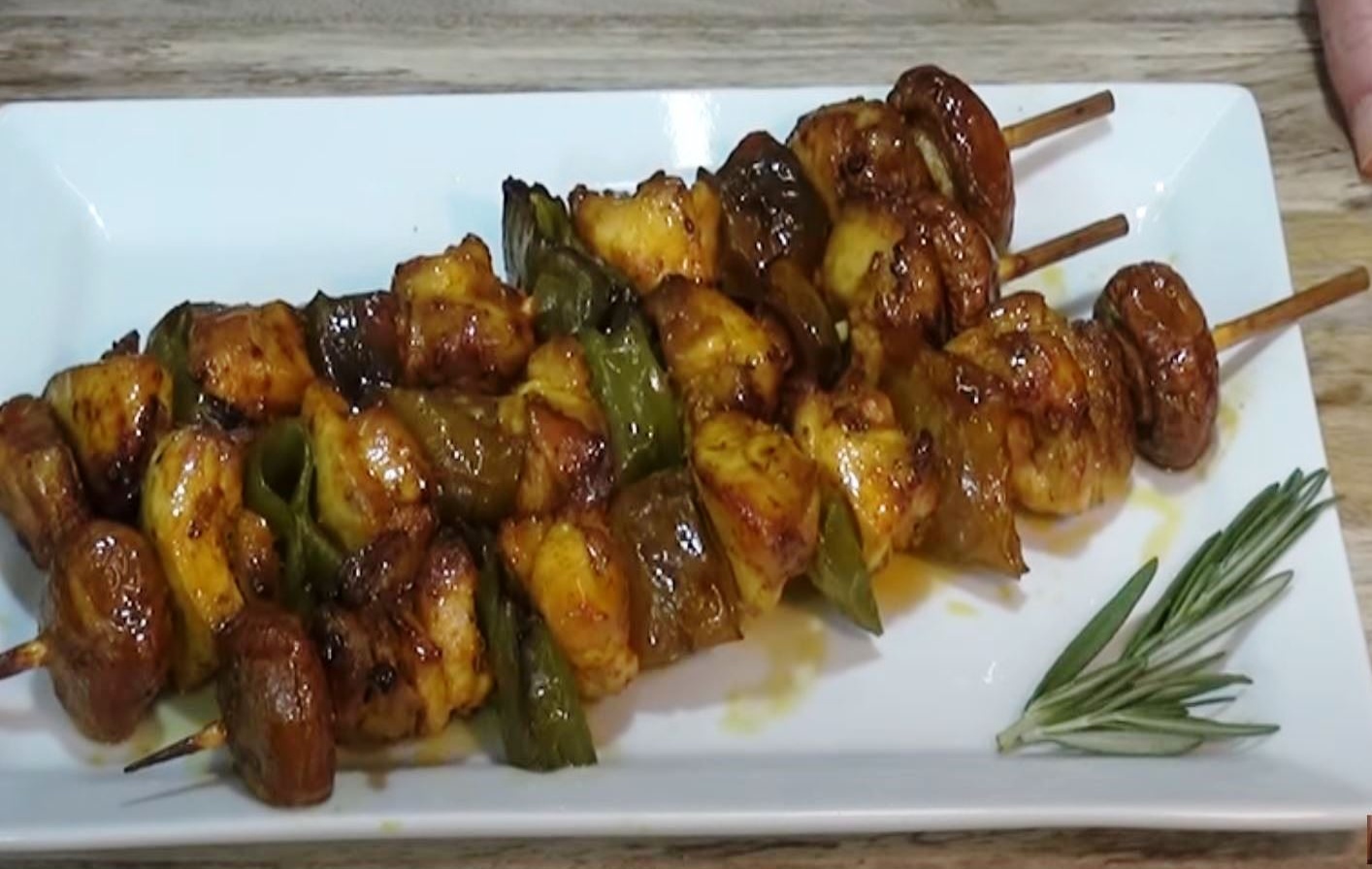 Αυτά τα σουβλάκια είναι μια εύκολη και νόστιμη επιλογή για γεύμα ή δείπνο, γεμάτη με ζουμερά κομμάτια κοτόπουλου, πλούσια μανιτάρια, ζουμερές ντομάτες και τραγανές πιπεριές.