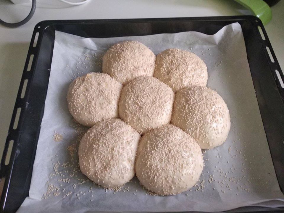 γιατί θα φουσκώσουν και πριν μπουν στον φούρνο και όση ώρα ψήνονται,πασαλειβουμε με το αυγό και πασπαλιζουμε με σουσάμι..