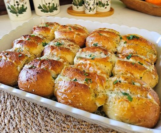 Μαλακά λευκά ψωμάκια γεμιστά με μοτσαρέλα και επικαλυμμένα με βούτυρο σκόρδου.