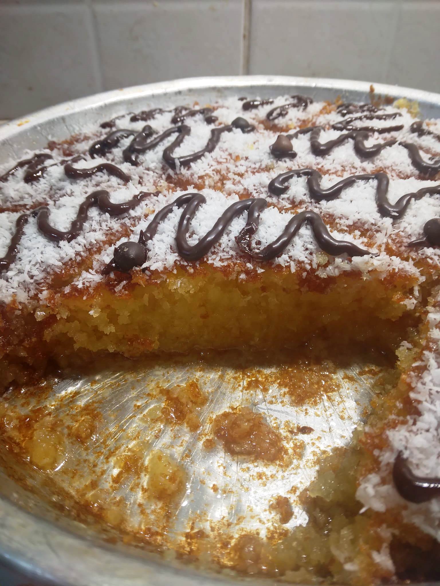 Έχω φτιάξει ένα απλό ωραίο Ραβανί με Ινδοκάρυδο για το απογευματινό καφεδάκι μας.