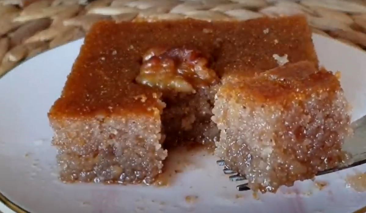 Μετά προσθεστε το καβουρδισμένο σιμιγδάλι χτυπήστε και τέλος τα καρύδια και ανακάτεψε απαλά μέχρι να ενωθούν όλα τα υλικά.