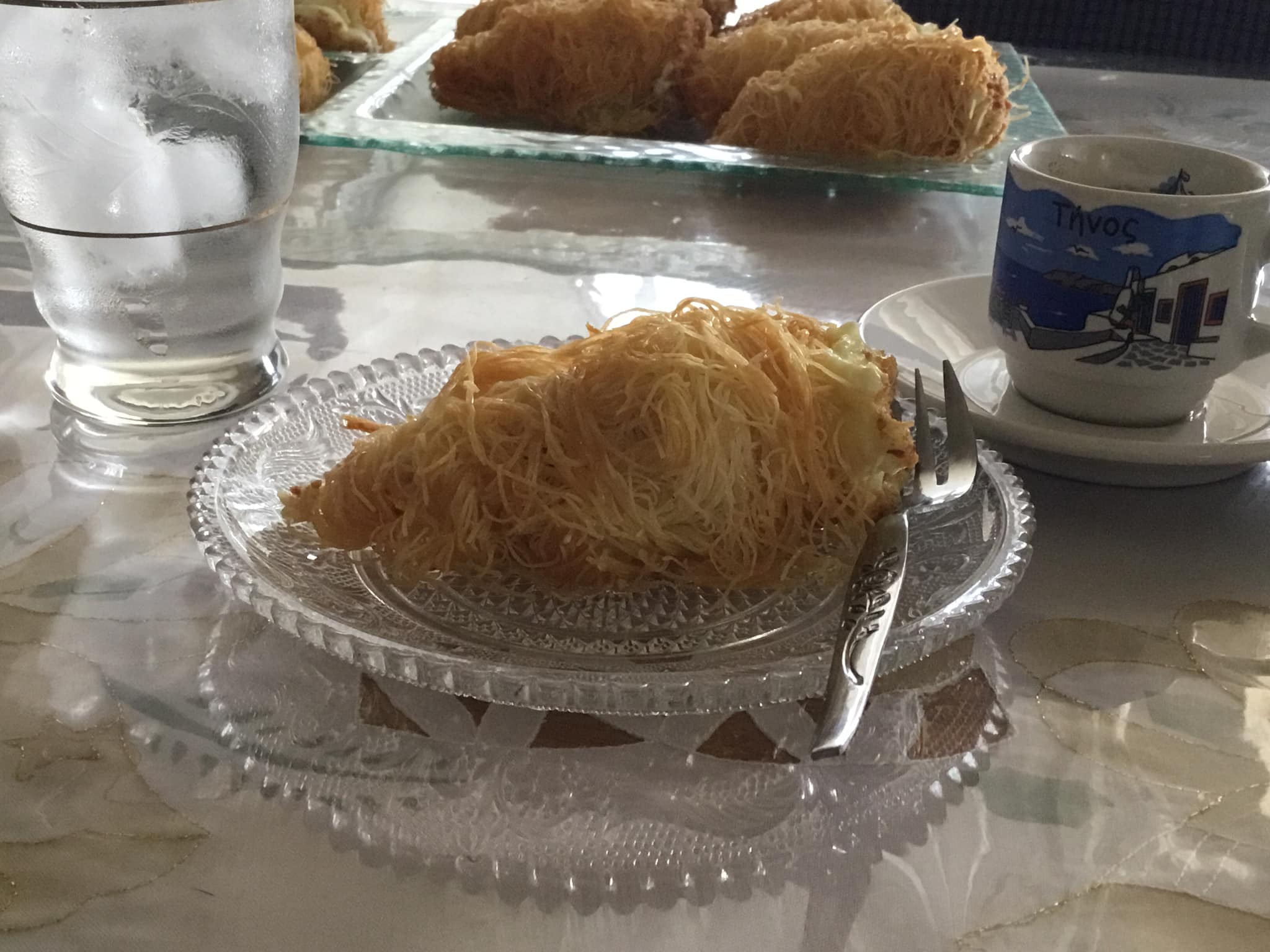 - Πάρτε μια τούφα από το κανταΐφι και ανοίξτε την σε μια πετσέτα.