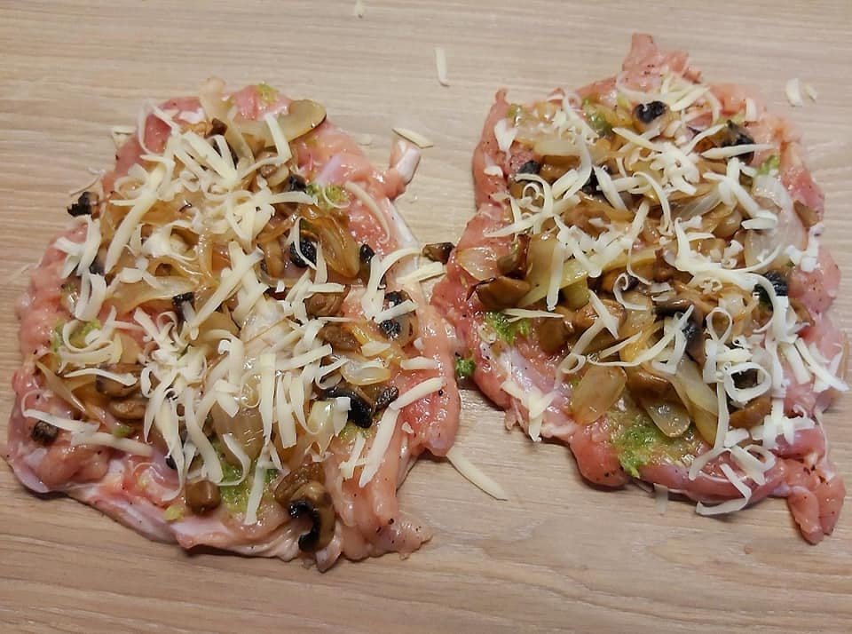 Μόλις κρυώσει η γέμιση, περιχύστε τις μπριζόλες κοτόπουλου.