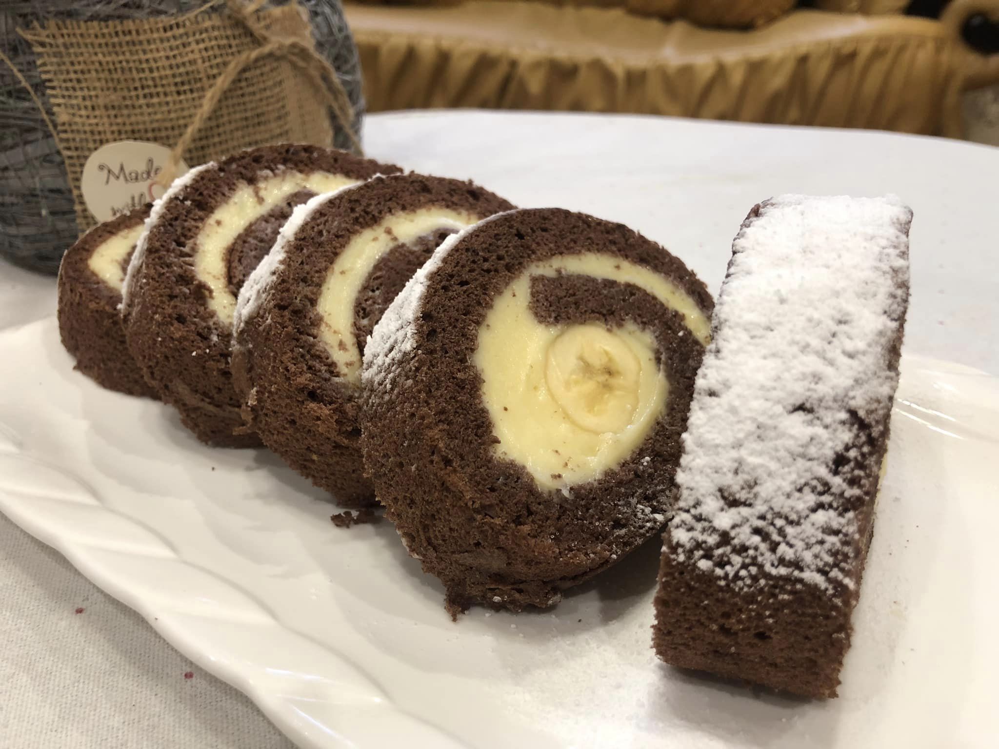 Αυτό το ρολό σοκολάτας δεν είναι απλά ένα γλυκό, είναι μια εμπειρία! Η πλούσια, βελούδινη κρέμα σοκολάτας αγκαλιάζει τρυφερές φέτες μπανάνας, τυλιγμένες σε ένα απαλό παντεσπάνι σοκολάτας.