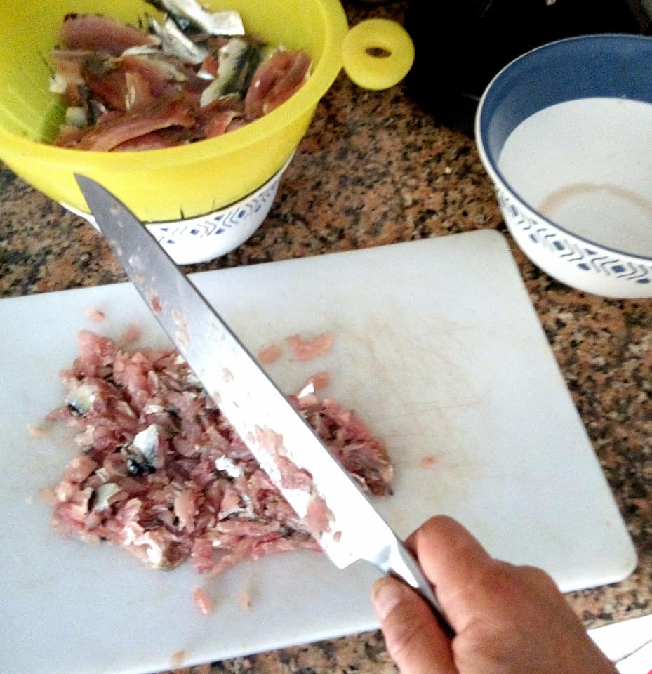 Πρέπει να μείνει περίπου 1 κιλό σαρδέλα…. : κόψτε τις σε κομματακια.