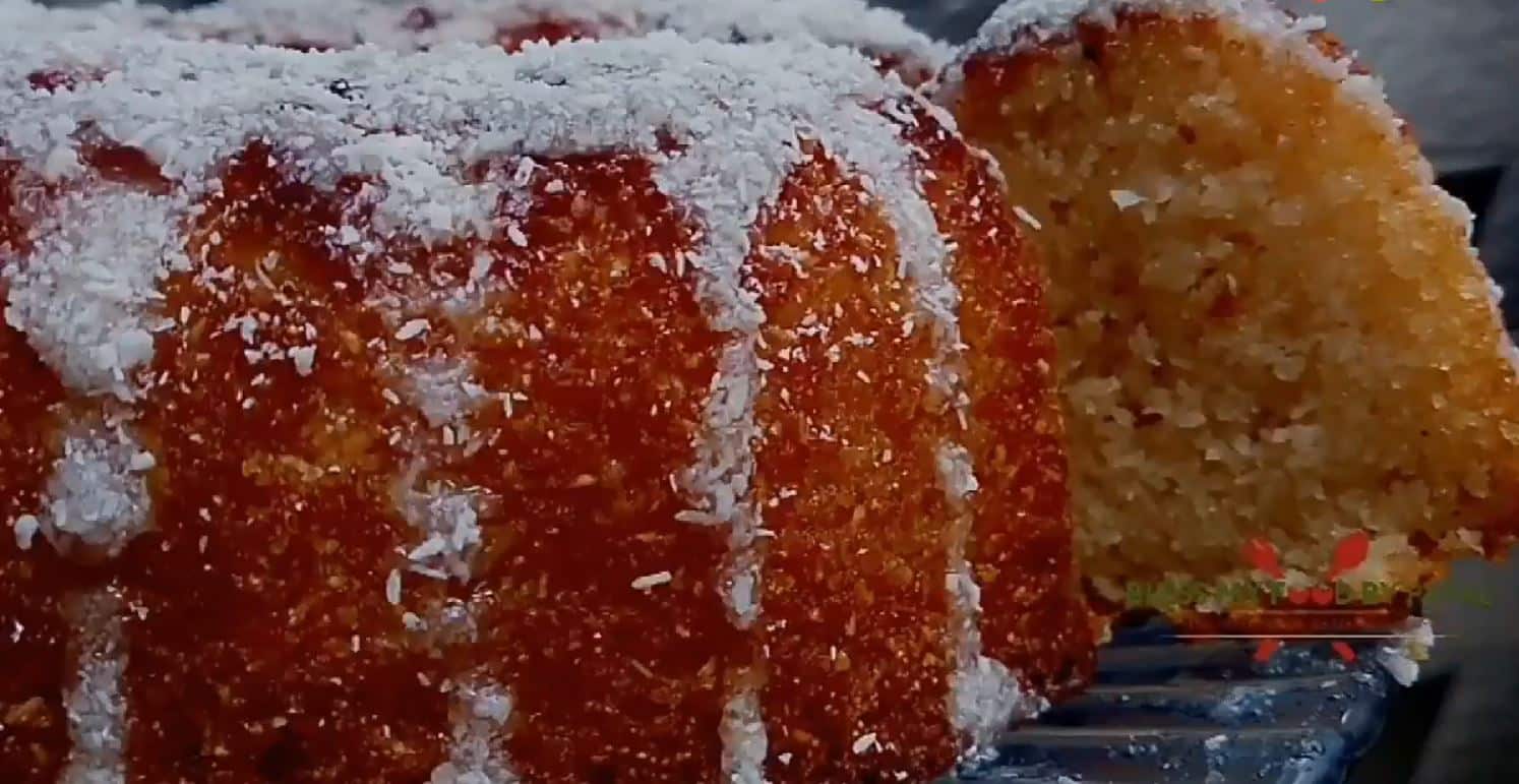 6. το κέικ καρύδας από σιμιγδάλι λιγότερο αυγό είναι έτοιμο.