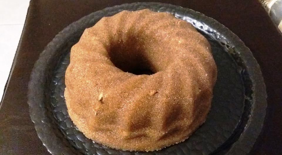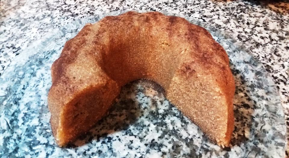 Αδειάζουμε το μείγμα σε μία φόρμα 22cm με τρύπα στη μέση αφήνουμε να κρυώσει για μία ώρα ξεφορμάρουμε πασπαλίζουμε με κανέλα και είναι έτοιμος να τον απολαύσουμε!!!!!
