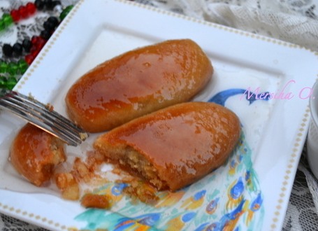9. Σιρόπιασμα: Όταν είναι έτοιμα, τα βγάζουμε και τα αφήνουμε σε θερμοκρασία δωματίου για να κρυώσουν . Τα σιροπιάζουμε κρύα με το κρύο σιρόπι . Αυτό το μείγμα κάνει περίπου 40 γλυκάκια . Δείτε Επίσης: Σιροπιαστά γεμιστά με σοκολάτα και καρύδι κουλούρια