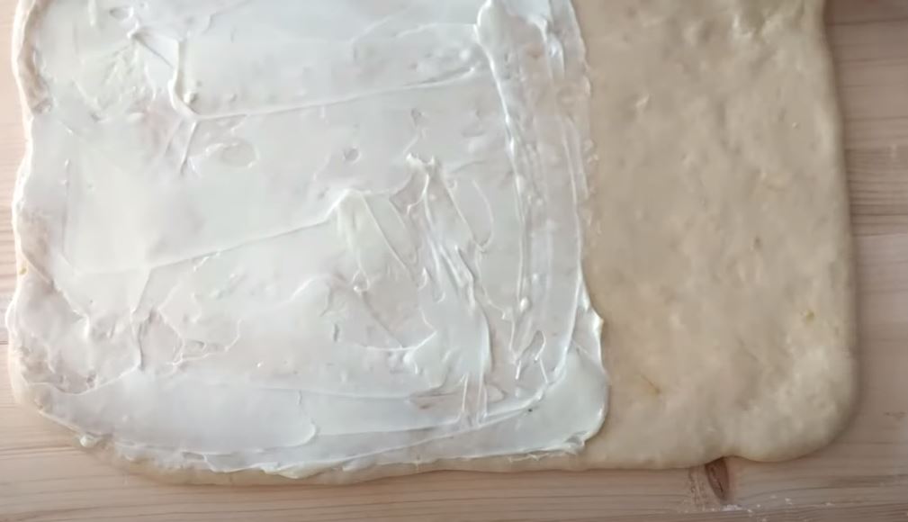 Αλειφουμε την ζύμη με βουτυρο στα 3/4 της επιφάνειας της .
