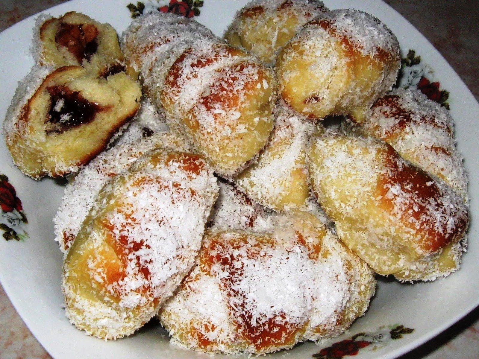 Σε 300 μλ χλιαρό γάλα βάζουμε μια κουταλιά ξερή μαγιά και 100 γρ ζάχαρη. Το αφήνουμε να σταθεί, προσθέτουμε 2 αυγά,