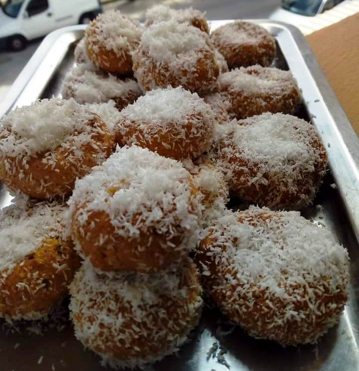 Τα βουτάμε όπως ειναι ζεστά στο κρύο σιρόπι και τα επικαλύπτουμε με καρύδα