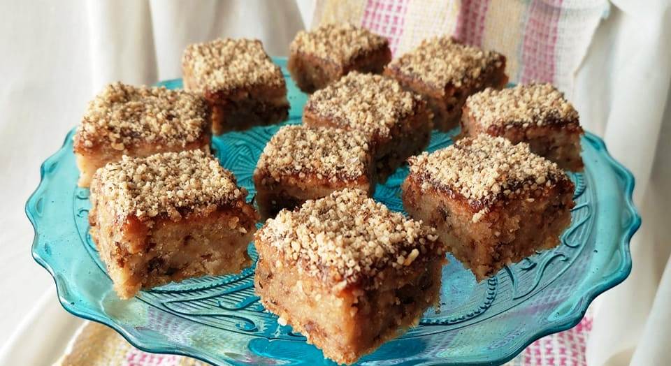 Σιροπιαστό γρήγορο κέικ με μήλα και καρύδι