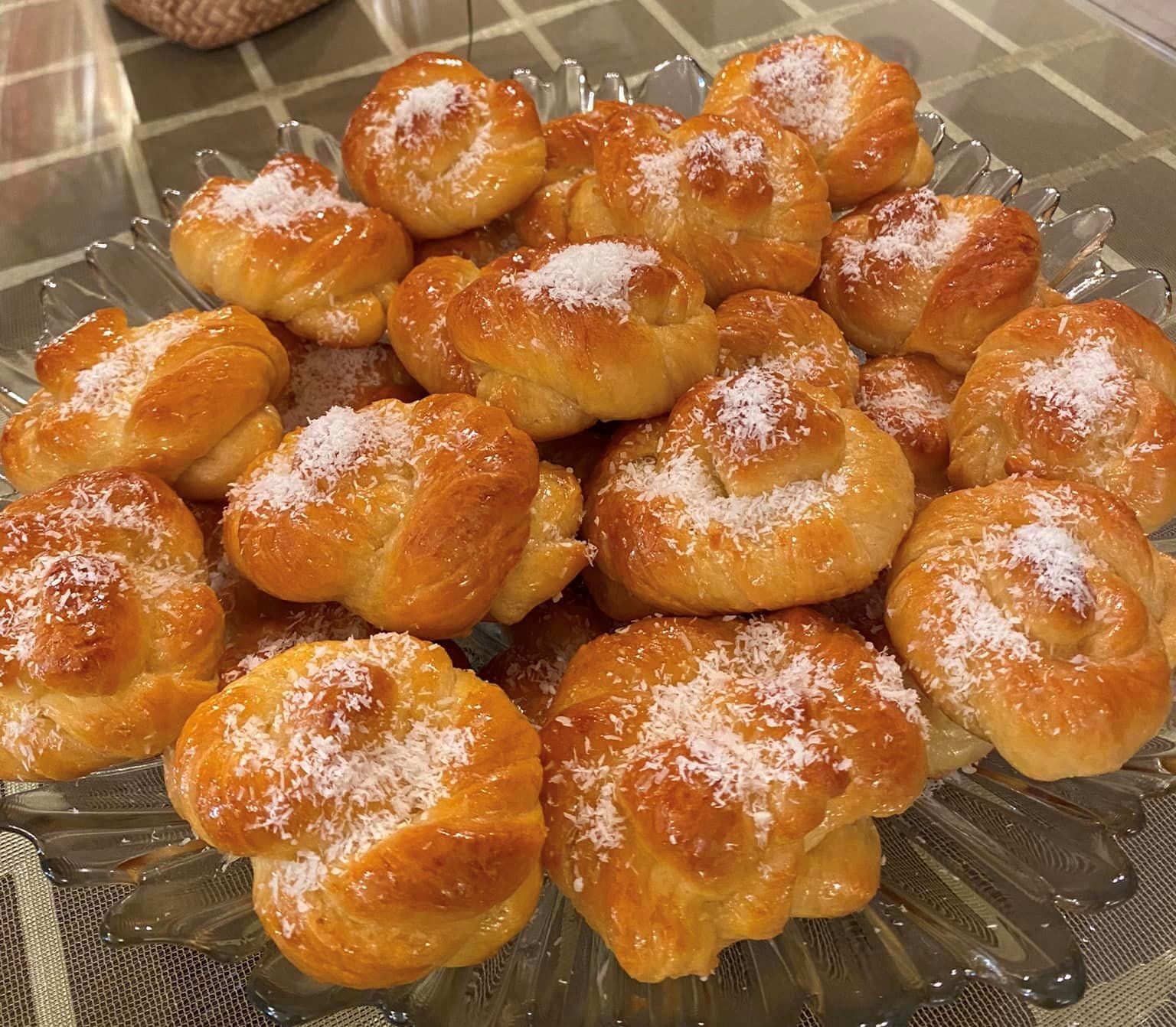 - Πασπάλισμα: Αν θέλετε, μπορείτε να πασπαλίσετε τους κόμπους με σουσάμι ή τριμμένη καρύδα πριν τους ψήσετε.